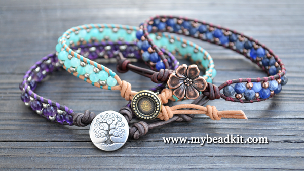 Check out our latest collection of Leather Wrap Bracelet Kits featuring genuine 6mm semi-precious stones! Choose from Amethyst, Red Creek Jasper, Sodalite, Amazonite, Mookaite and many more favorites!